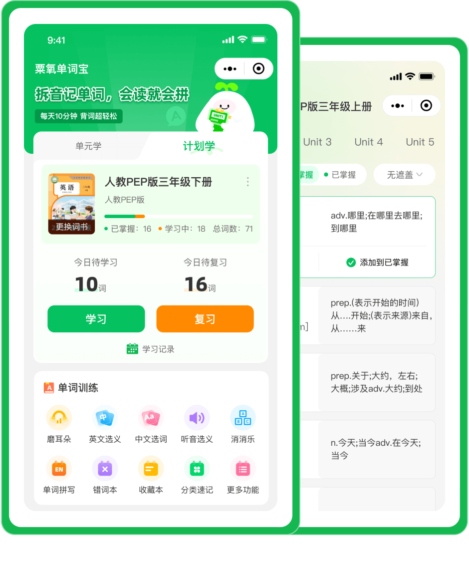 粟氧单词宝是一款专业英语AI背词软件,独创的AI造境记忆法,以艾宾浩斯遗忘曲线智能记忆系统为基础,通过深度学习的AI语境引擎,可将新学词汇自主转化为鲜活短文短句。每次复习都是场景化记忆重建,在巩固记忆的同时,完成阅读语感培养与写作素材积累,实现「记-读-写」三位一体突破。